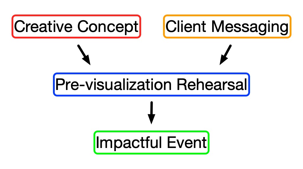 We can help you by delivering to-scale, and pixel accurate representations of what your content will look like at every scene of your event. We make it easier for you by creating and managing all of the pre-visualization details so you can focus on your messaging.